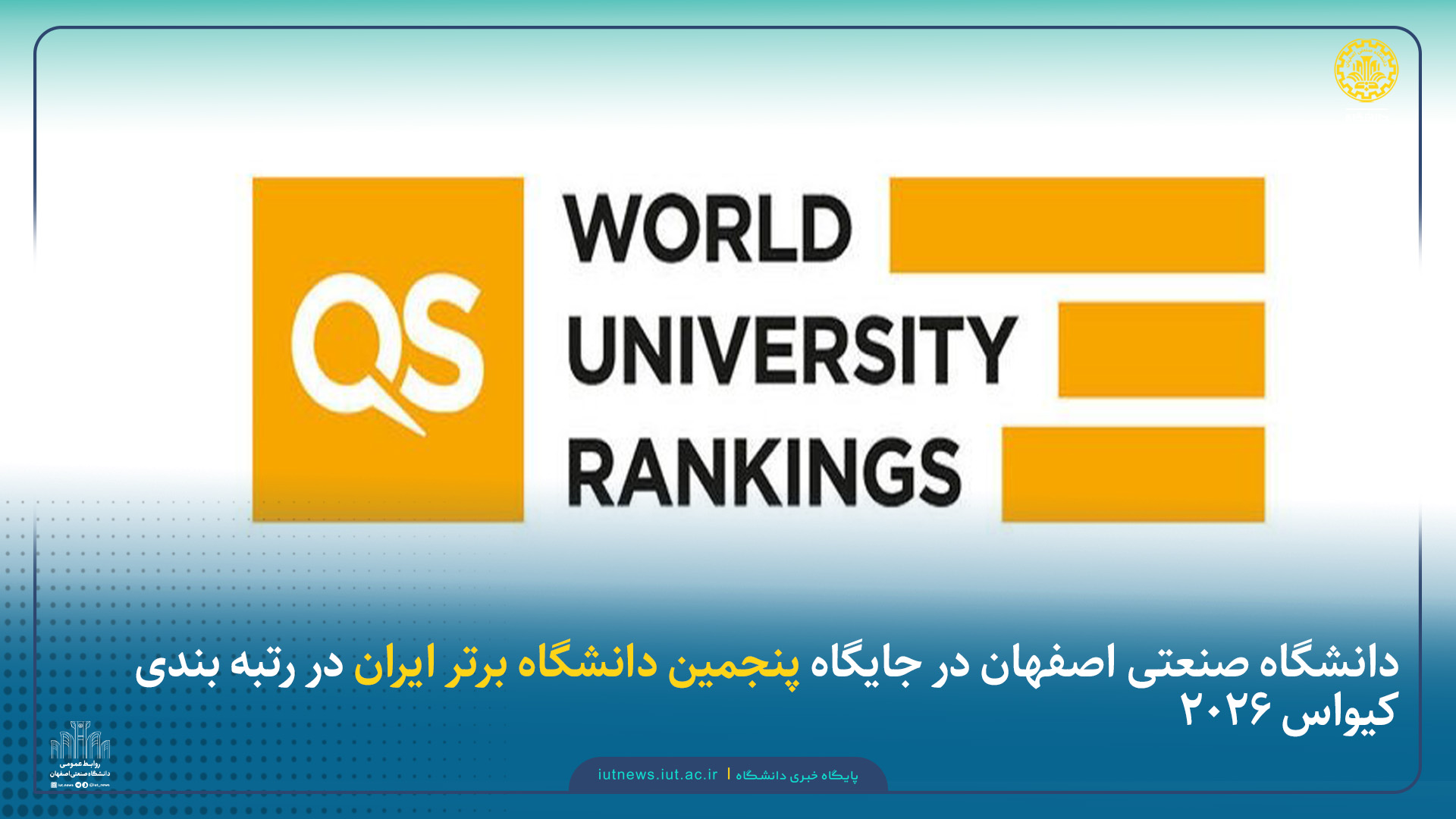 دانشگاه صنعتی اصفهان در جایگاه پنجمین دانشگاه برتر ایران در رتبه بندی کیواس 2026